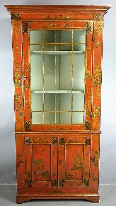 Bookcase display cabinet. A red lacquered Chinoiserie china cabinet of diminutive proportions. £1150